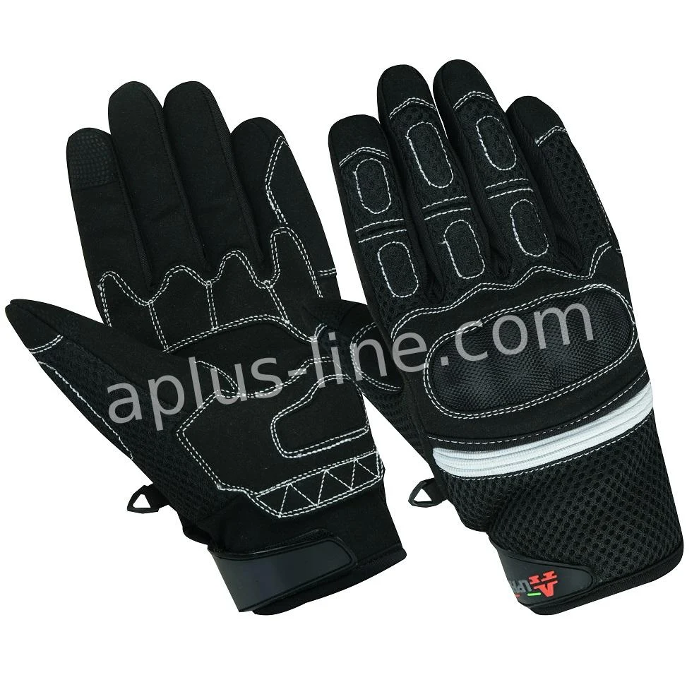 Comfortabele handschoen in zwart/wit design, speciaal ontworpen voor scooter- en motorrijders die kwaliteit en stijl combineren.