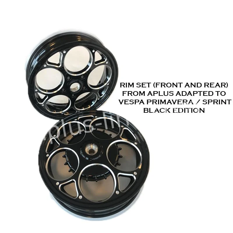 Deze velgenset van Aplus is speciaal ontwikkeld voor de Vespa Primavera en Vespa Sprint Black Edition. De set bevat zowel voor- als achterwiel, zodat u alles in één keer heeft wat u nodig heeft voor een complete upgrade van uw velgen.