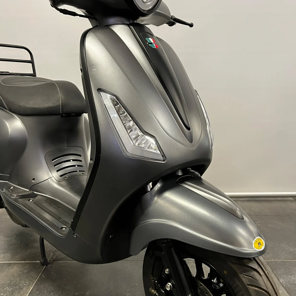 De uitvoering in mat grijs gecombineerd met mat zwarte details geeft de Bravo een stoere en tijdloze uitstraling. De scooter ziet er netjes uit en heeft wel wat lichte gebruikerssporen, passend bij de leeftijd en kilometerstand. Dit is uiteraard meegenomen in de aantrekkelijke prijsstelling.