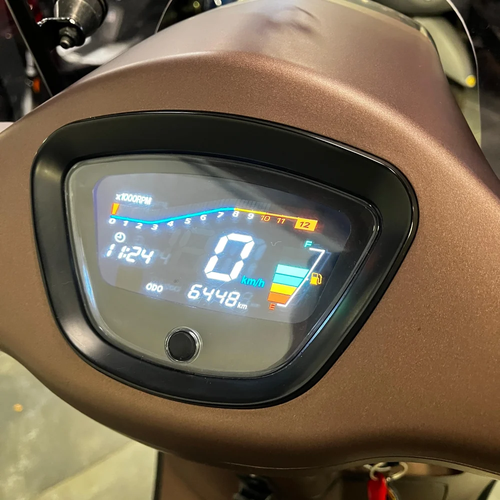 Standaard is de GTS Palermo voorzien van LED-knipperlichten met dagrijverlichting, waardoor je extra goed zichtbaar bent in het verkeer. Het digitale dashboard geeft alle benodigde informatie overzichtelijk weer en het handschoenenkastje zorgt voor extra gebruiksgemak onderweg.