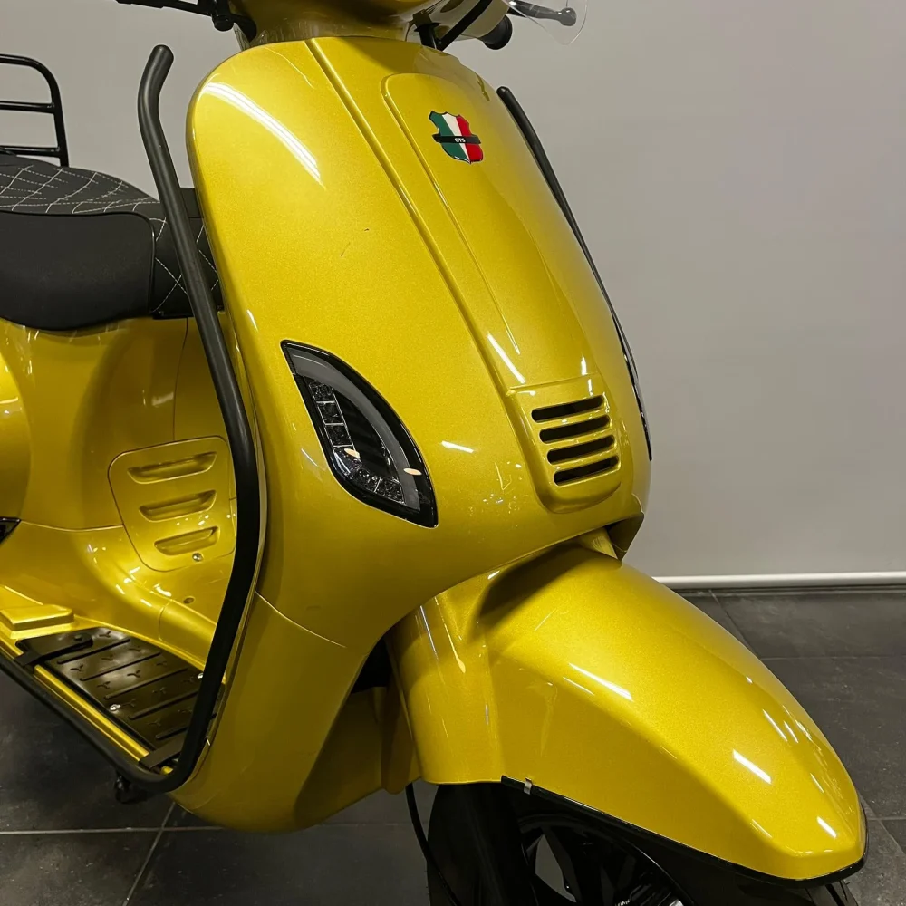 GTS Toscana Dynamic uit 2023 met slechts 1.036 km op de teller. Luxe Dynamic uitvoering met digitaal dashboard, LED-verlichting, aluminium treeplaten en uitgebreide styling. Voorzien van hoog helder windscherm, sierbeugels en opklapbare achterdrager. Geleverd met afleverbeurt en 6 maanden garantie.