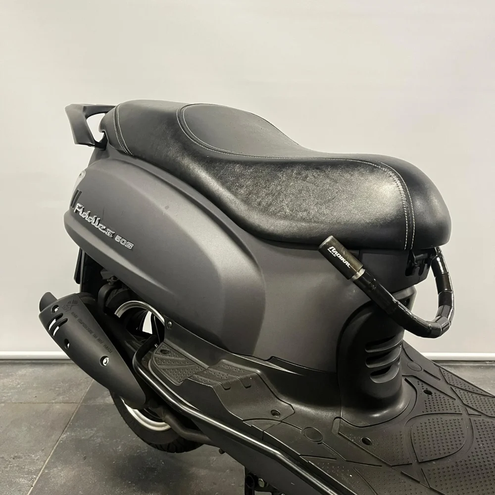 De scooter is uitgerust met een beugelset aan de voorzijde en een antirobo slot. Dit extra stuurslot zorgt voor aanvullende beveiliging wanneer de scooter geparkeerd staat. In de teller is een tijdsklok geïntegreerd, wat extra gebruiksgemak biedt.