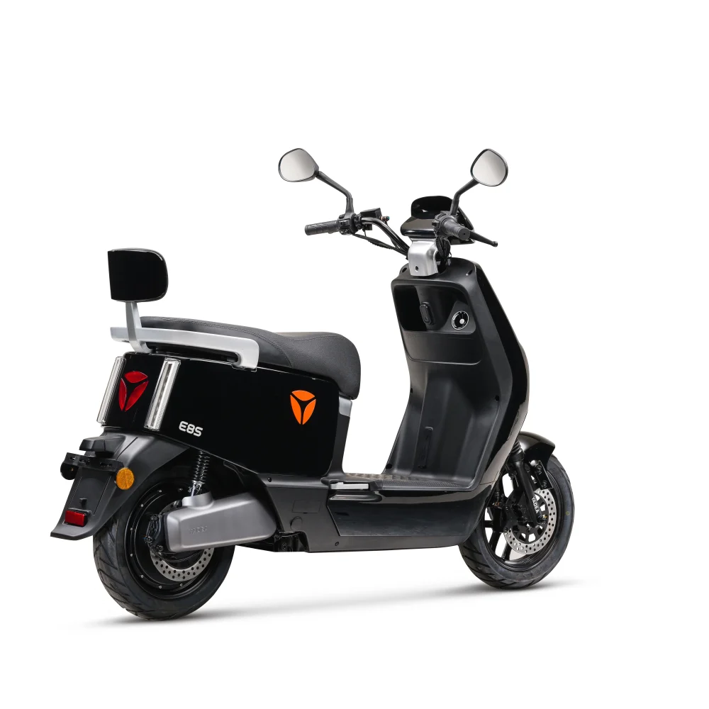 De E8S is er als 45 km/u en wordt in Nederland ook als 25 km/u aangeboden (blauw kenteken)—handig voor stadsritten en helmplicht-proof rijden. Vraag naar de beschikbare uitvoering.