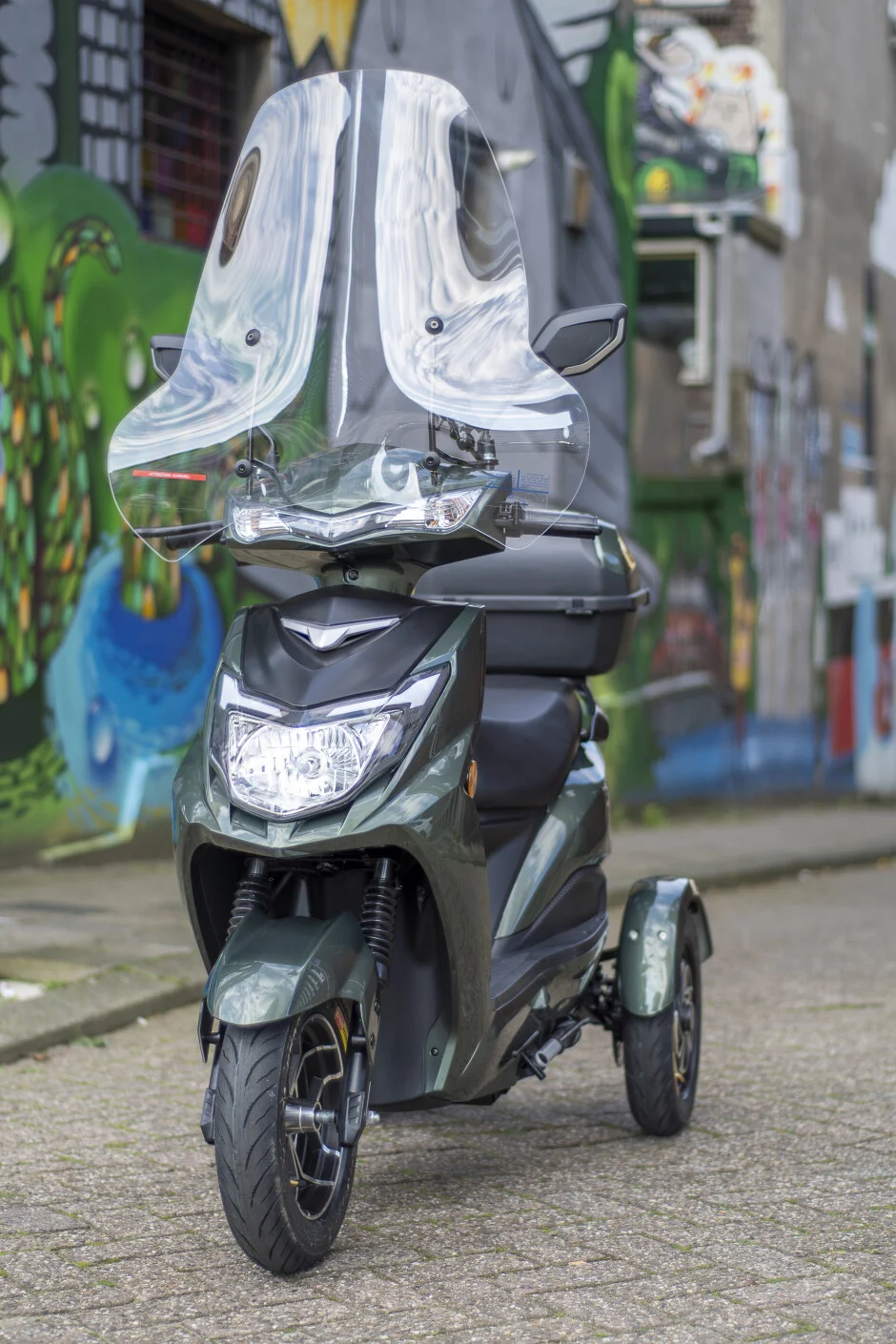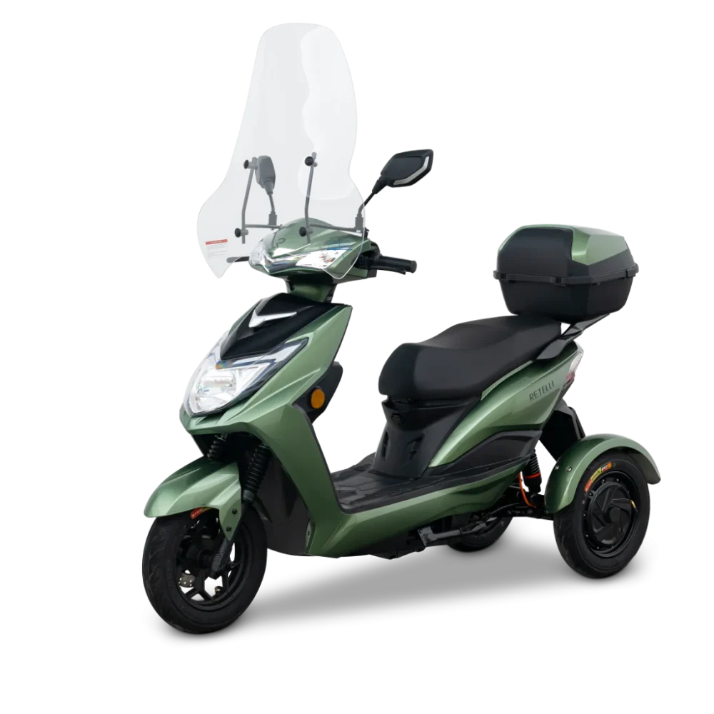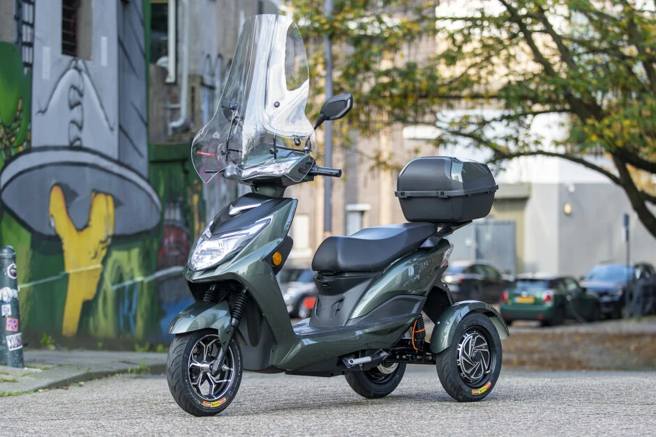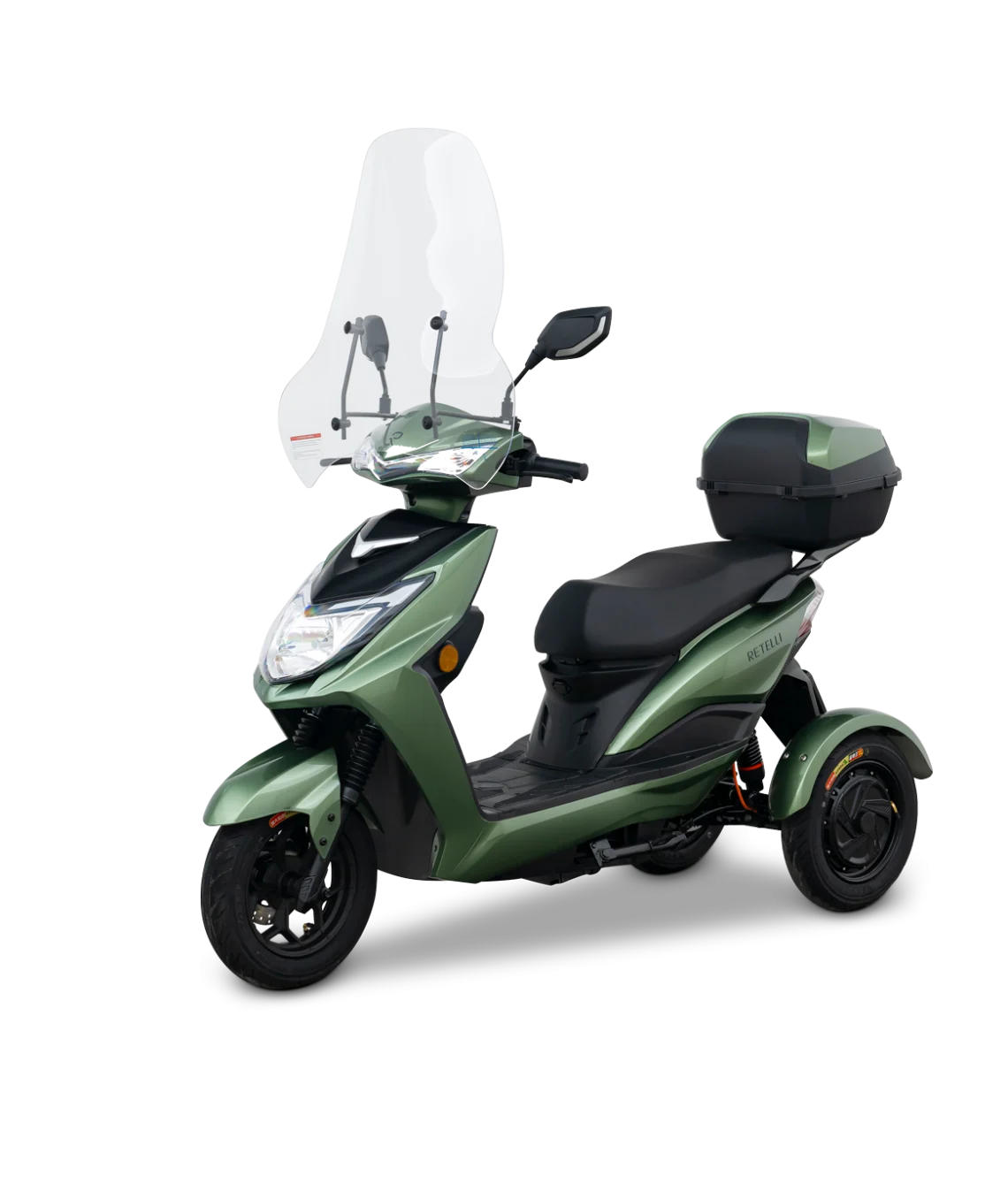 De Retelli Conforto is een gestroomlijnde driewielscooter met een sportieve uitstraling. In tegenstelling tot traditionele scootmobielen, oogt en rijdt deze als een echte elektrische scooter. Dankzij de twee achterwielen heb je extra stabiliteit, en door de slimme achterasophanging neem je bochten soepel en veilig. Ook het ruime zadel en de royale beenruimte maken het rijden comfortabel, zelfs met een passagier achterop.